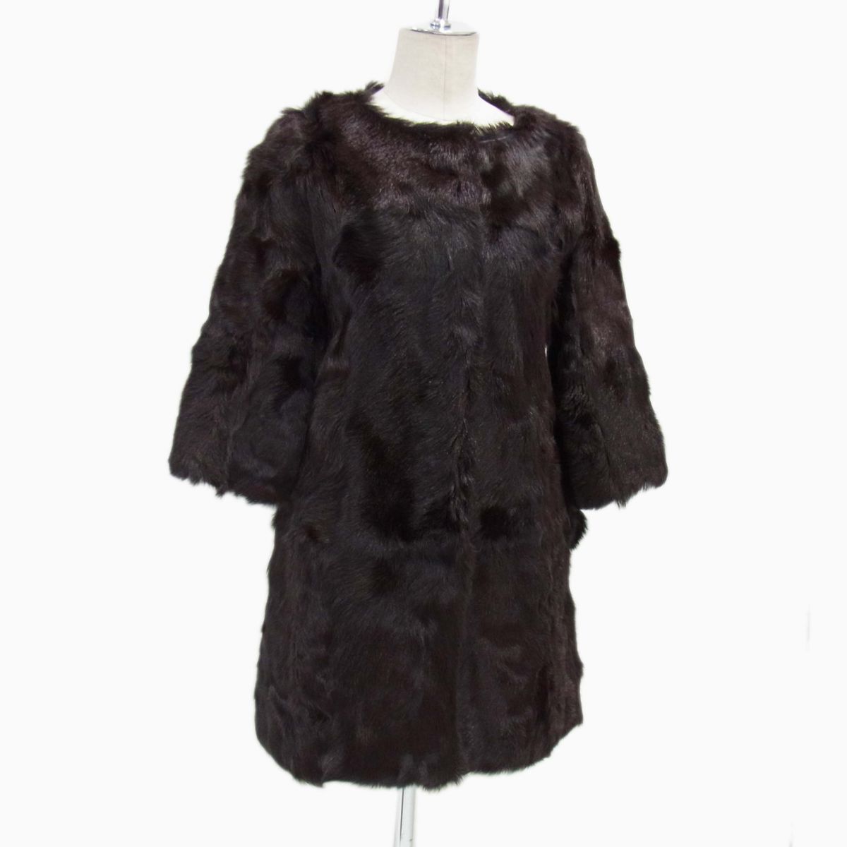 > 毛皮 定価8万◇URBAN RESEARCH/ROSSO ゴートファー コート ノーカラー ダークブラウン アーバンリサーチ/ロッソ レディース