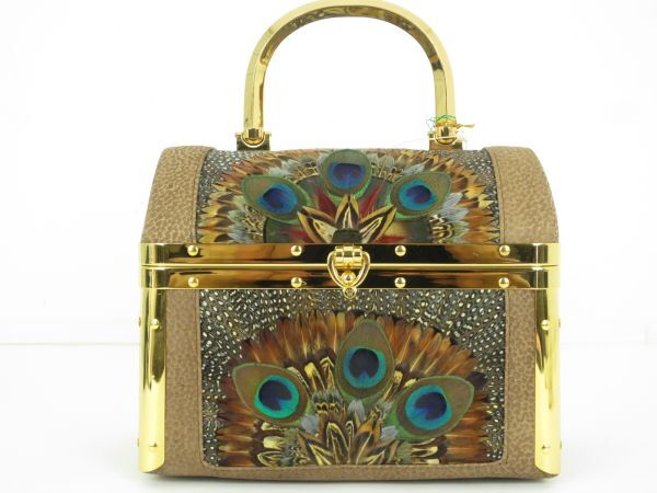 - ボルサソベラナ Bolsa Sovelana 孔雀×レザー バニティバッグ ハンドバッグ 日本製 ゴールド金具 お洒落な 未使用