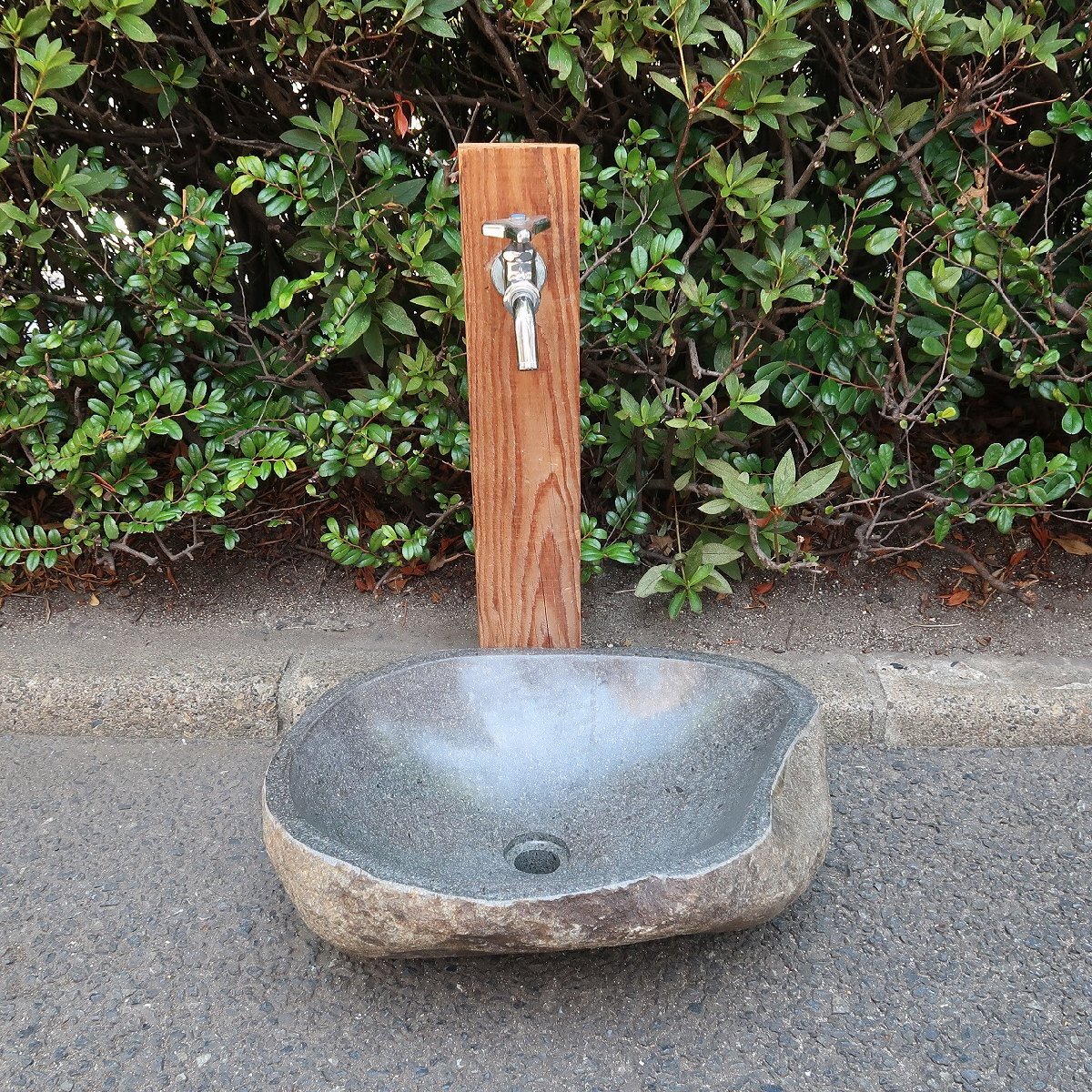- 天然石 洗面ボウル リバーストーン L 48X40 立水栓水受け皿 シンク 河石 川石 DIY【大型宅配便】【沖縄県・離島配送不可】250969