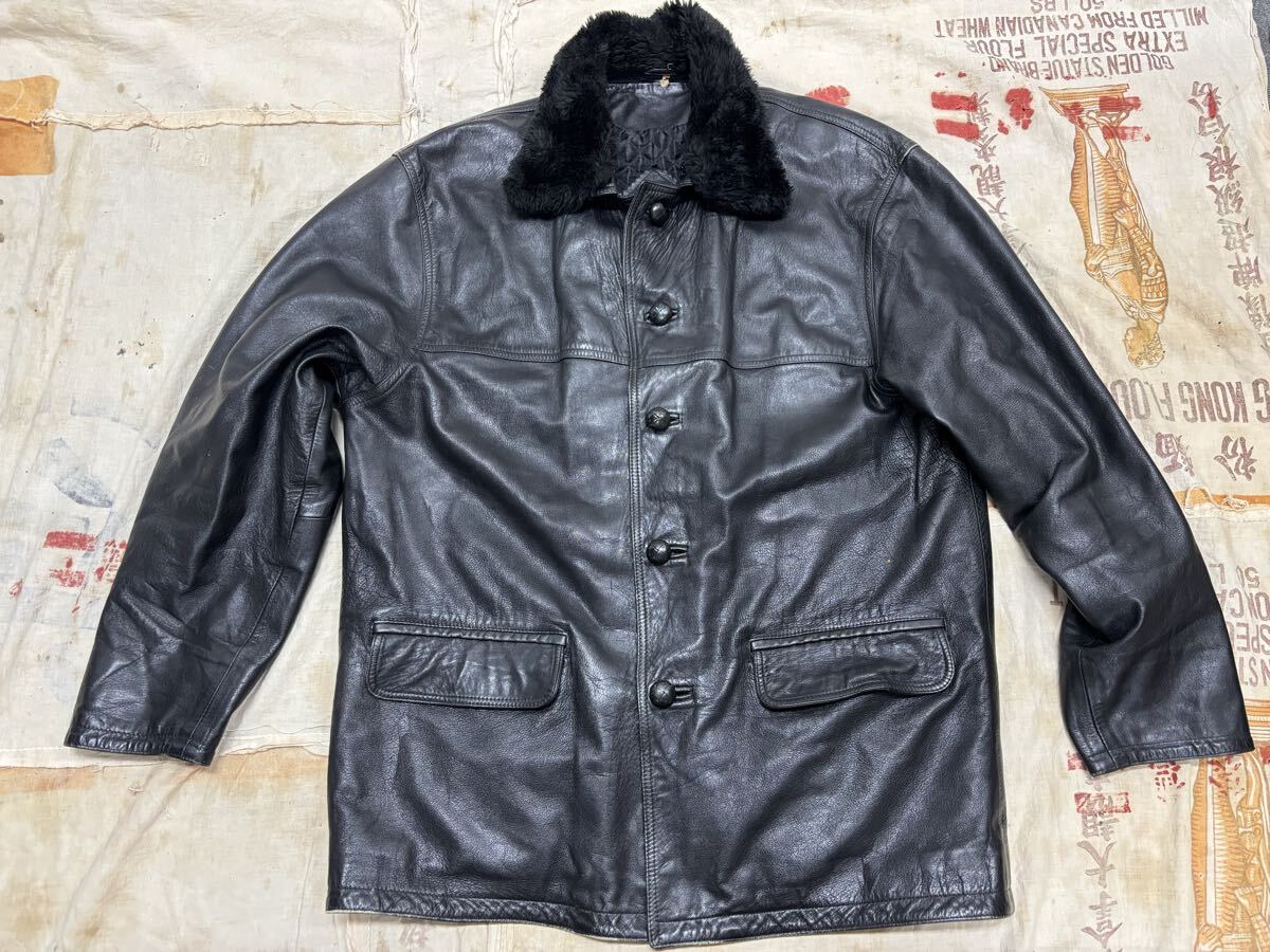 - イギリス製 ヴィンテージレザージャケット デタッチャブルカラー