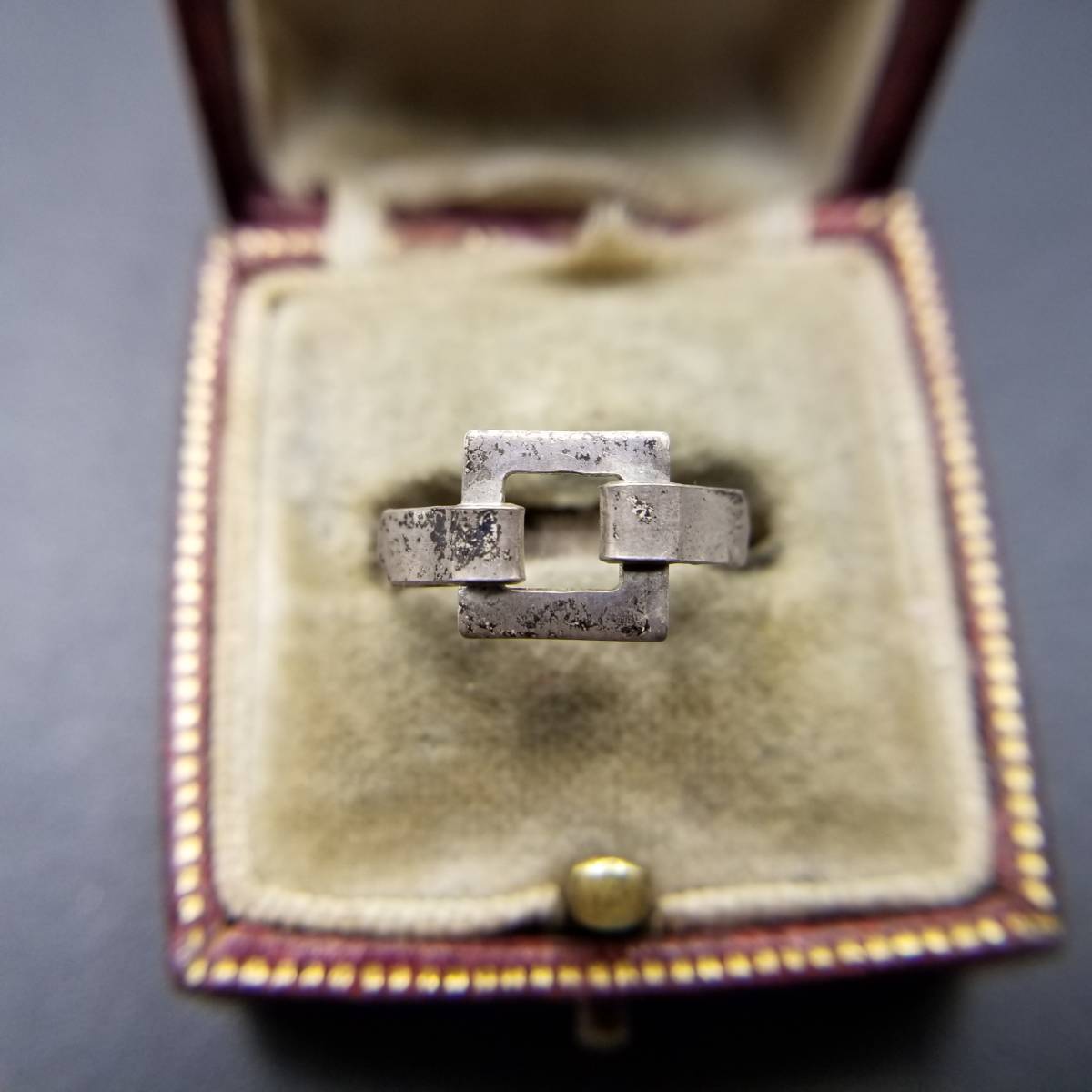 - シンプル スクエア オープンワーク バックル調 925 シルバー ヴィンテージ リング 銀 指輪 デイリー ユニセックス Y13-A