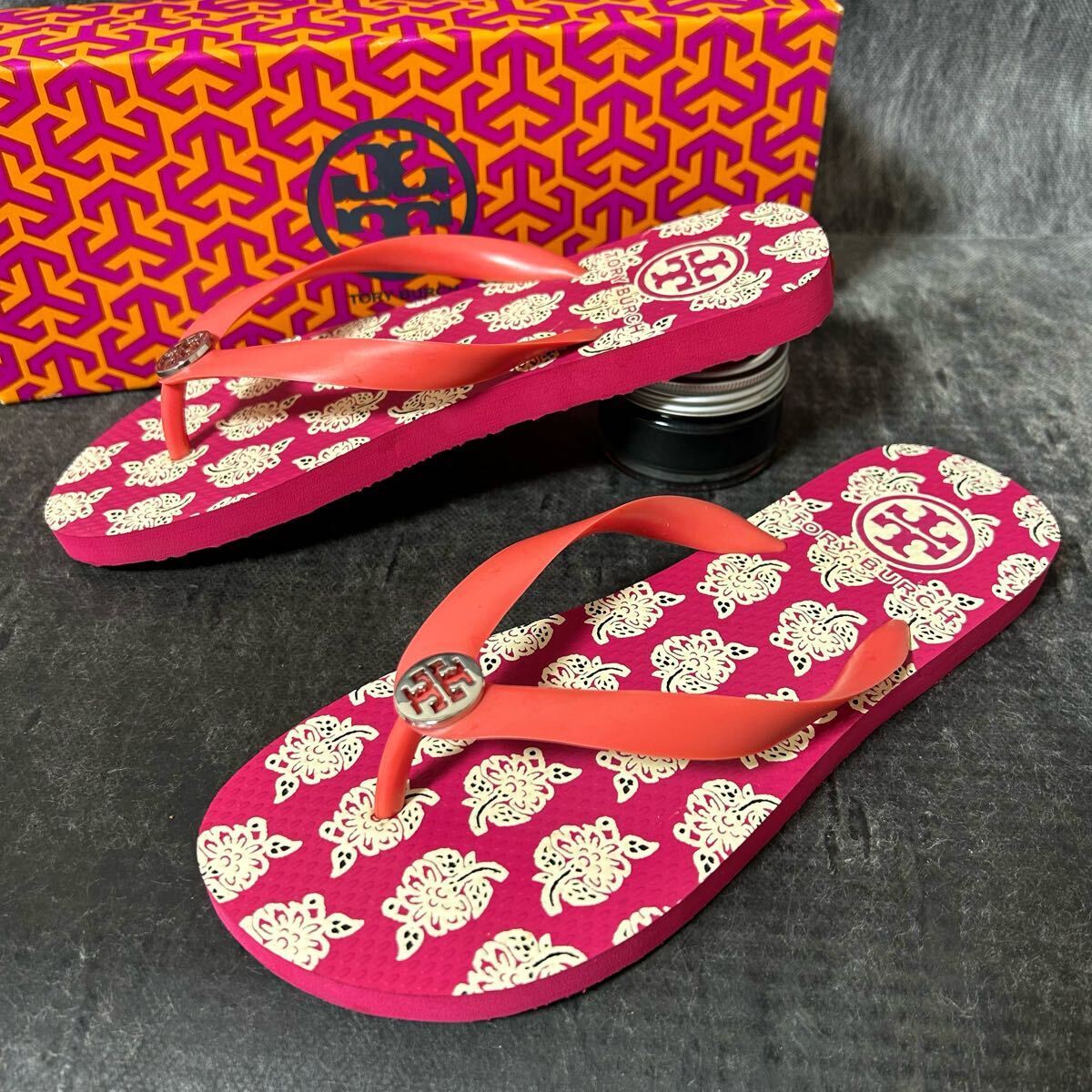 - 【美品】TORY BURCH トリーバーチ ビーチサンダル 花柄 フラワー サンダル 7 24cm相当 ピンク *26