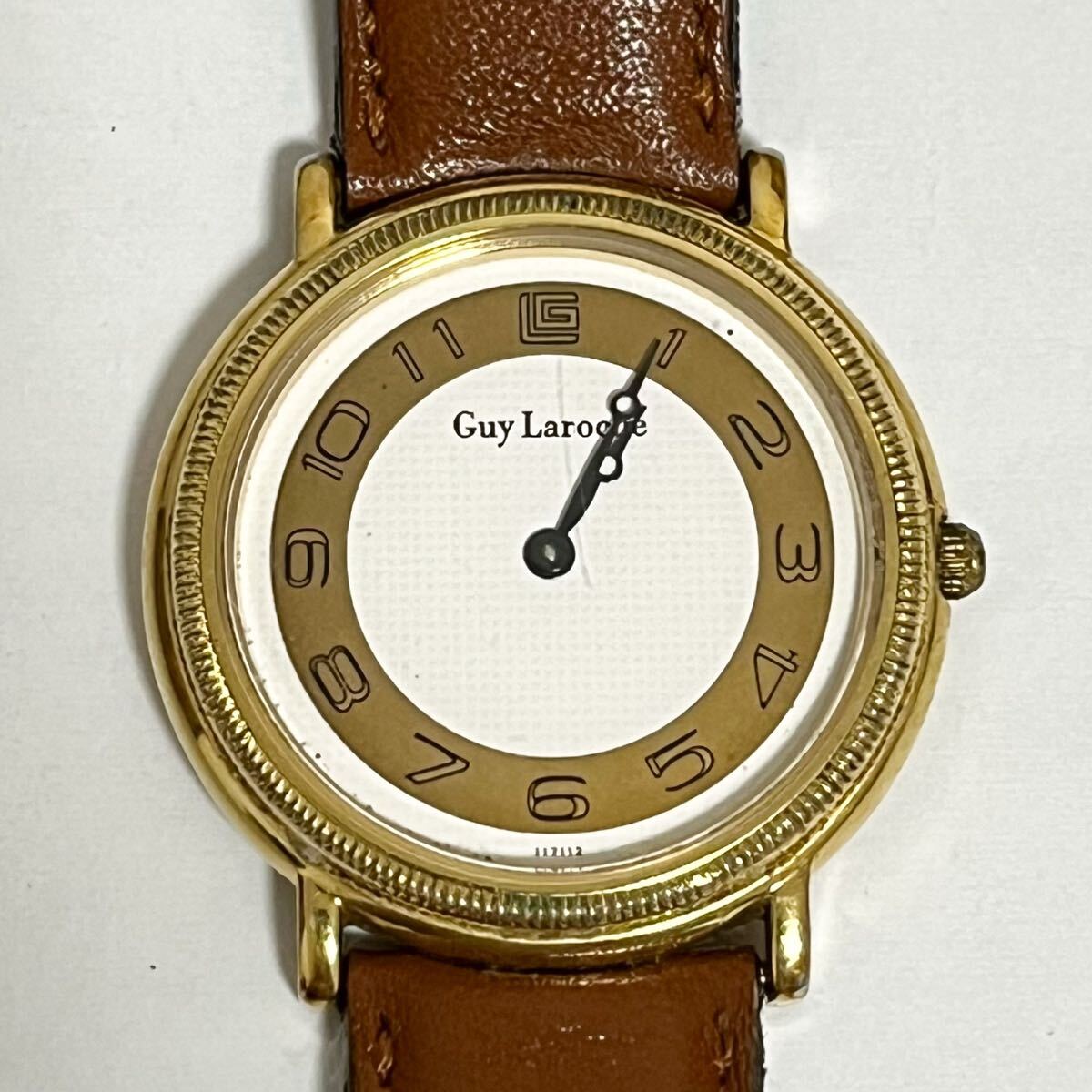 > 和822B★ Guy Laroche 188 0868 ギラロッシュ クォーツ 2針 腕時計 ウォッチ ホワイト ゴールド レザーバンド メンズ