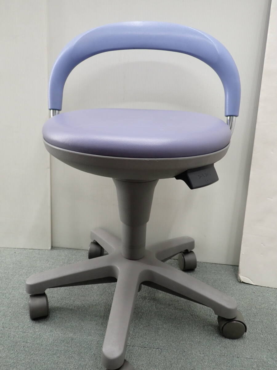 - ④[NAIKI/ナイキ]丸イス(ロータイプ・背付) E231 病院用 ブルー 510×425×400~720mm メディカル 回転椅子 キャスター付 USED品