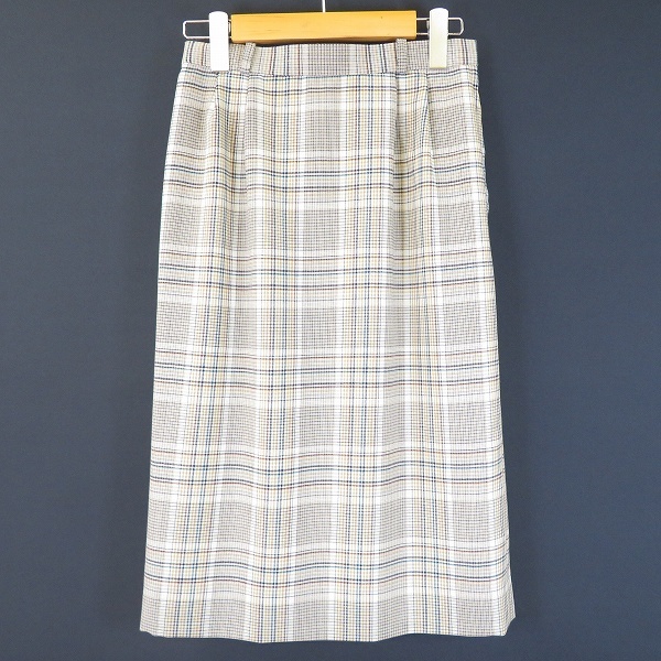 > #a レリアン Leilian スカート タイト ベージュ系 マルチ チェック柄 ウール 日本製 962934 k01