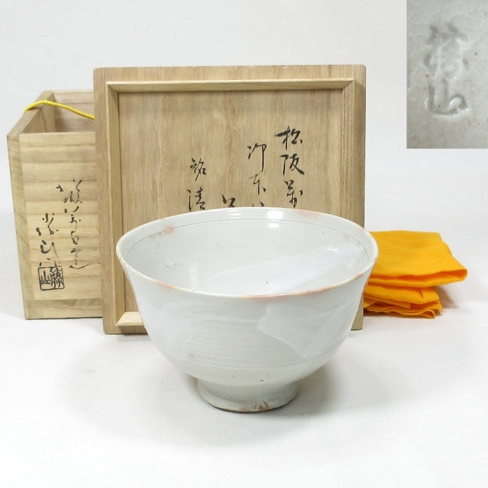 > 【B0180】茶道具 万古焼 松古窯 『 佐久間 勝山 』作 御本刷毛目茶碗 四方桟 共箱 堀内家 12代 堀内宗完(兼中斎)書付け