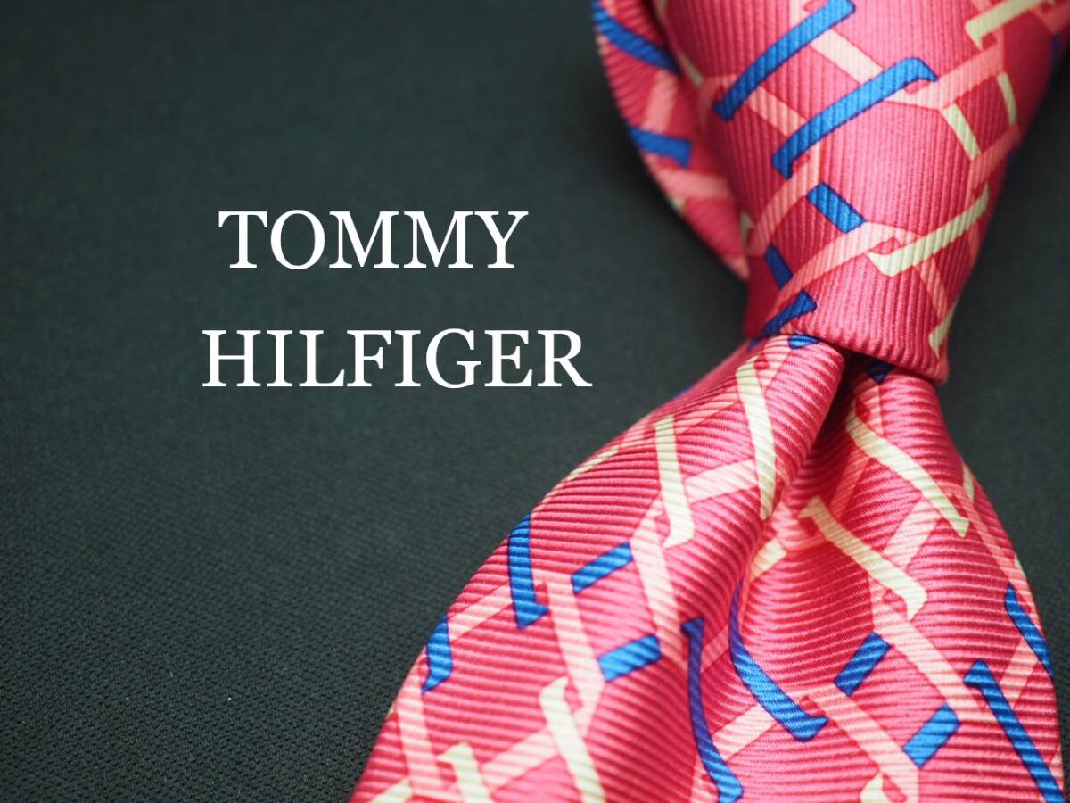 > 美品【TOMMY HILFIGER トミーヒルフィガー】 F1493 ピンク系 SILK ブランド ネクタイ 古着 良品