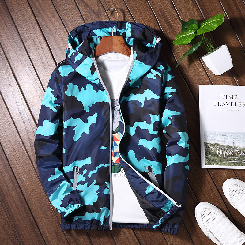 > メンズミリタリージャケット ウィンドブレーカー スタジアム ジャンパーブルゾンジップアップパーカー フード付き M~5XL ブルー