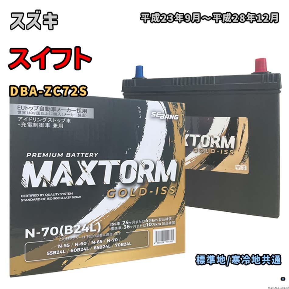 > バッテリー MAXTORM MAX-N-70 スズキ スイフト DBA-ZC72S 平成23年9月~平成28年12月 対応 N-65 互換 604
