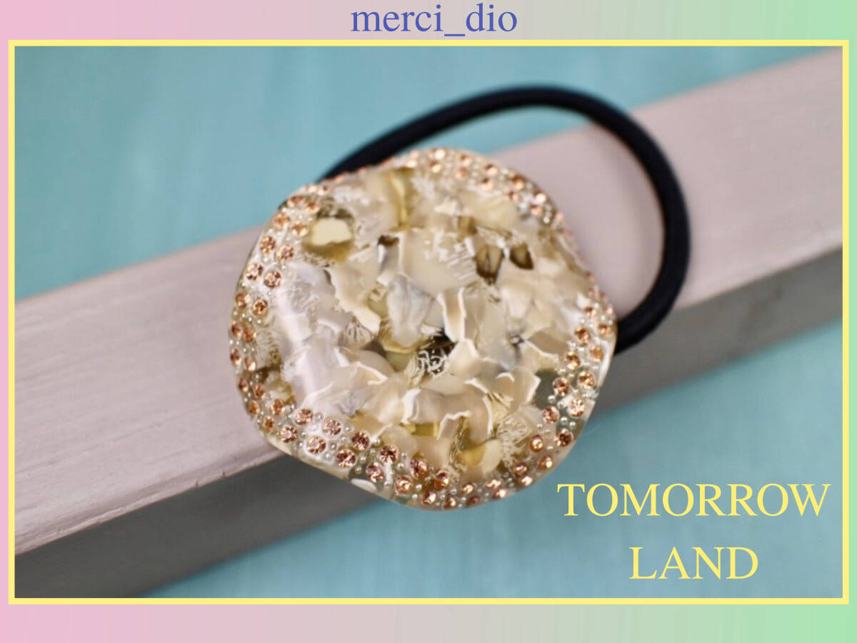 - トゥモローランド TOMORROWLAND ラインストーン スクエア ヘアゴム デザインヘアアクセサリー シェルカラー アイボリー 新品 未使用 wai