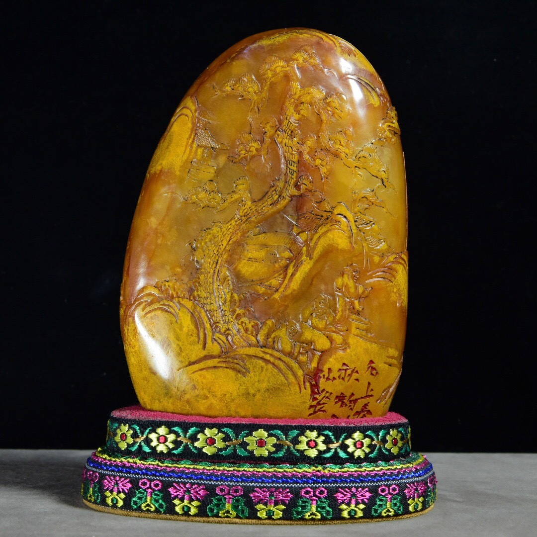 - 蔵友旧蔵出 寿山石 燈光凍 田黄石 細密彫 仙姿秋韻紋 印章 貴重品 稀少物品 置物 賞物 中国時代美術品