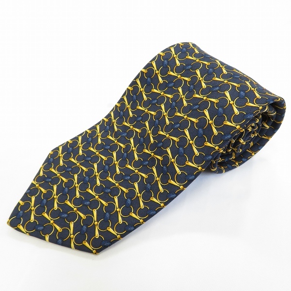 - #ae ブルックスブラザーズ BrooksBrothers ネクタイ 紺系 黄色系 総柄 チェーン柄 シルク アメリカ製 メンズ 938037 k01