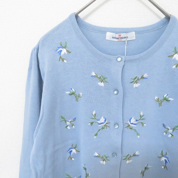 【ブランド】ギャラリービスコンティ GALLERYVISCONTI【アイテム】ニット カーディガン【表記サイズ】2【平置き実寸】肩幅:約 33cm袖丈:約 54cm身幅:約 41cm着丈:約 48cm【状態】未着用品【備考】-【色】水色系【素材】画像をご参照ください。★当店の商品はすべてリユースアイテムとなります。特質上、些細なダメージは記載しておりませんので着用に問題のない使用感、着古した雰囲気などはご了承くださいませ。キーワード/アクイール/古着/used/ビンテージ/ヴィンテージ/昭和/レトロ/バレエコア/リボンコーデ/ビスコンティ(株)/