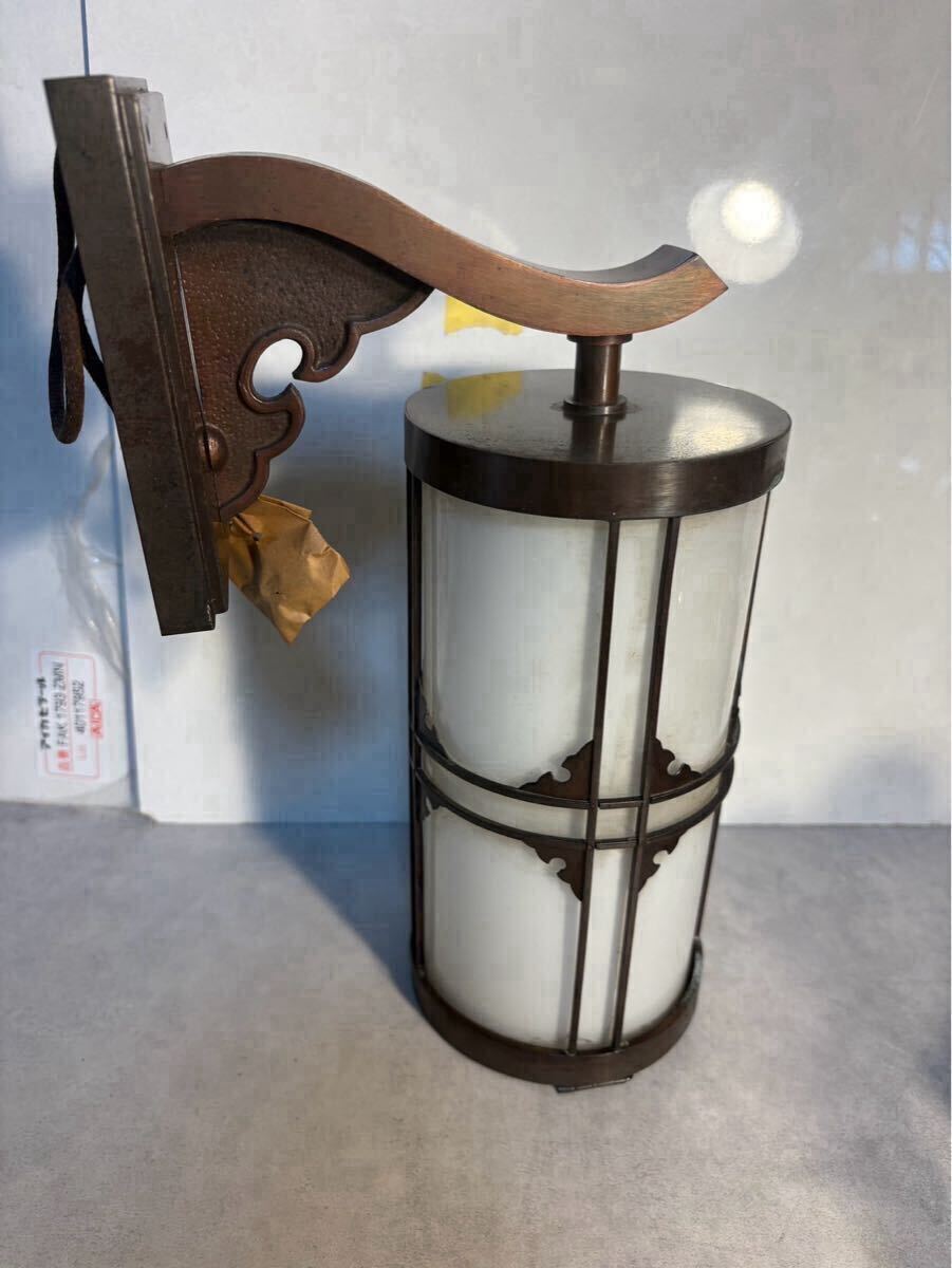 - 昭和レトロ 大正ロマン 和モダン 壁掛照明 外灯 玄関灯 乳白ガラス シェード 電笠 ミルクガラス ライト ランプ 金具 アンティーク 当時物
