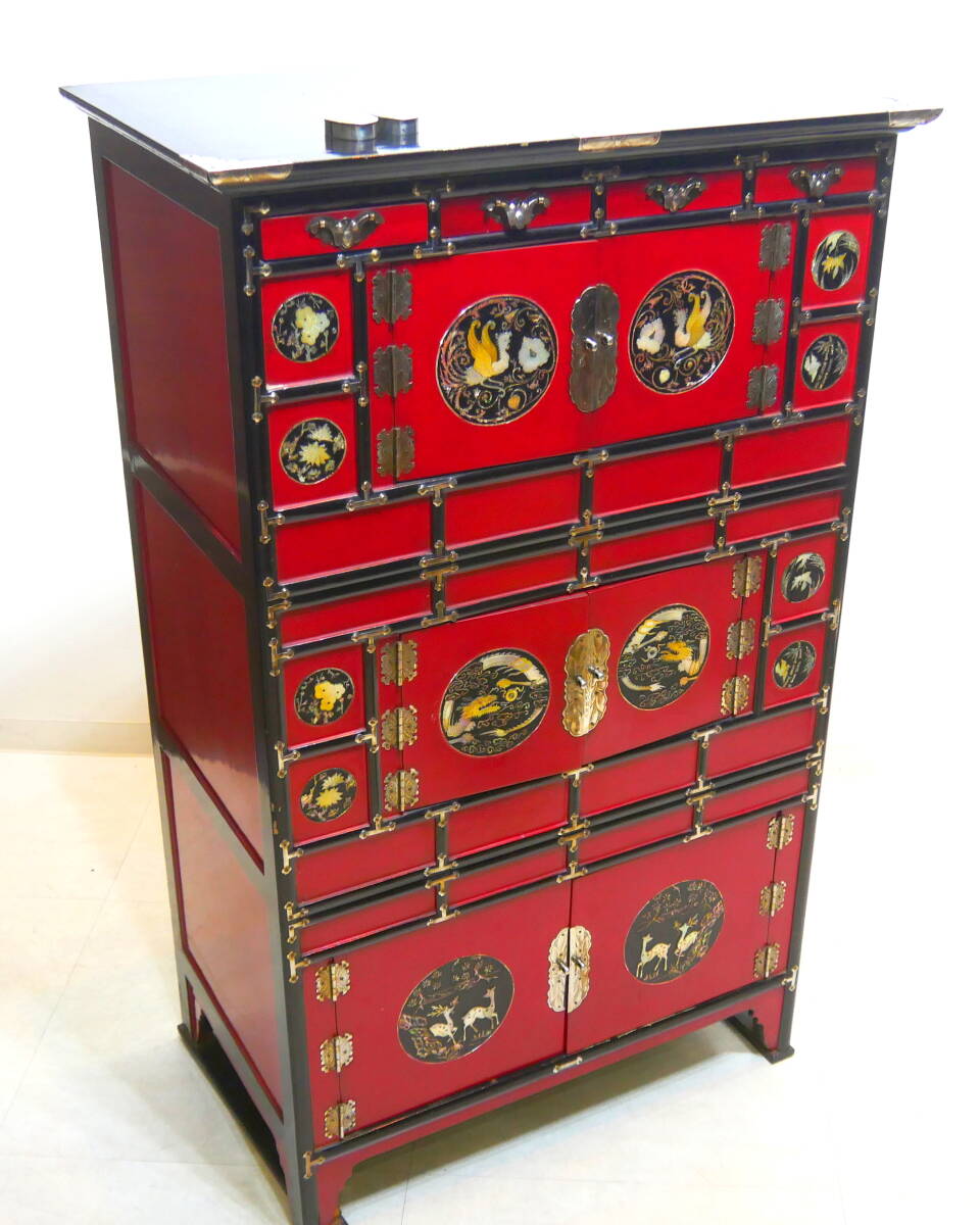 - 引取限定 東大阪(R701-B48)美術工芸 螺鈿細工 彫刻 鳥 龍 3層 キャビネット 飾り棚 箪笥 伝統工芸 民芸