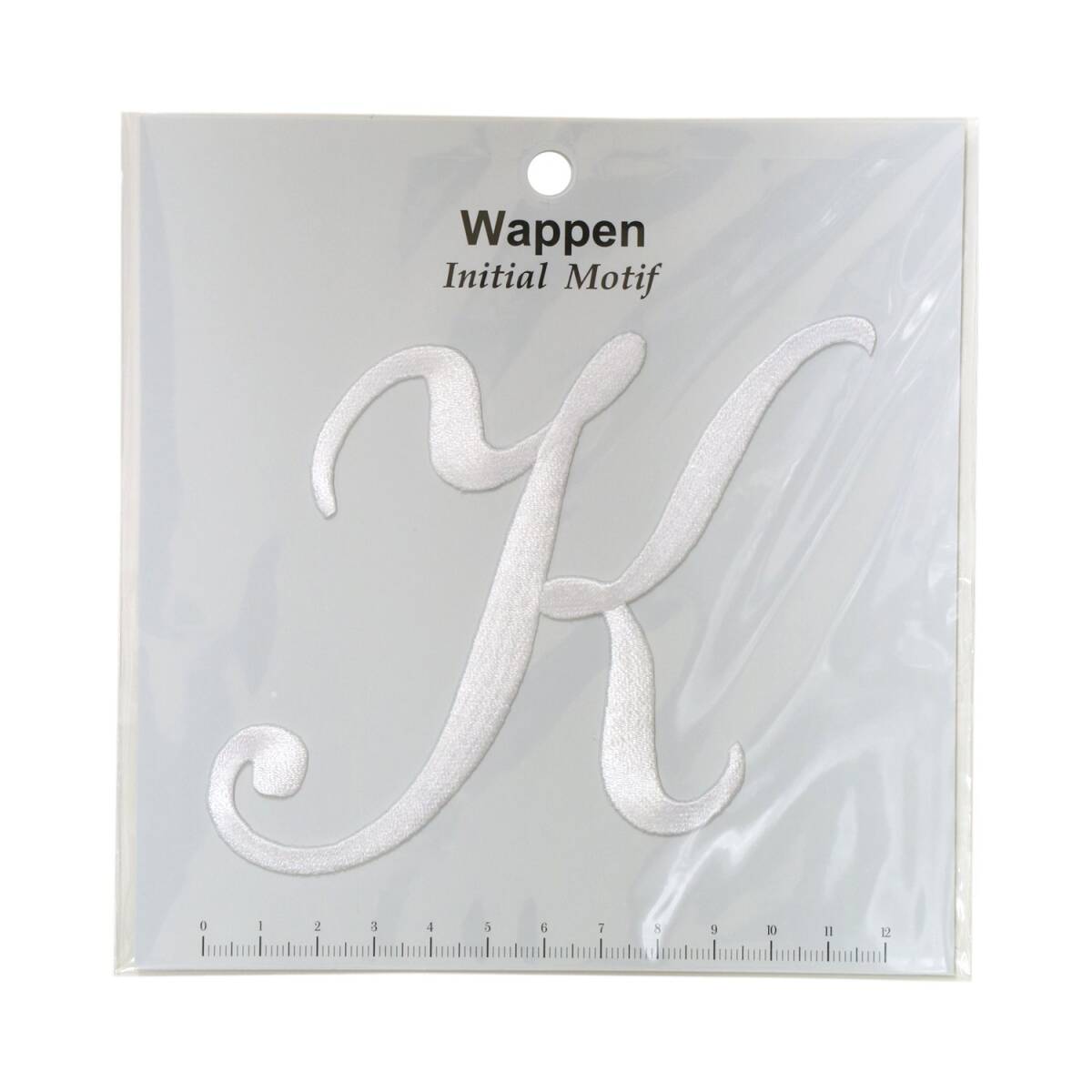 - ワッペン モチーフ 筆記体 K イニシャル 横10.5cm×縦9.5cm KIYOHARA IMW