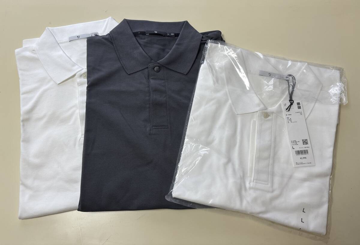 - 【新品】+【美品】=UNIQLO=ユニクロ J リラックスフィットポロシャツ【L】WHITE+DARK GRAY 3枚set