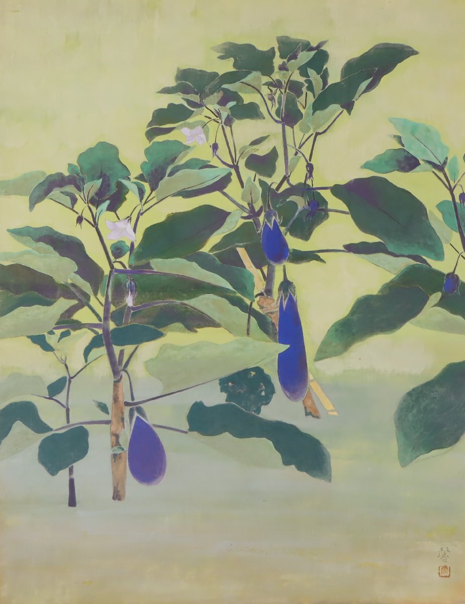 ・石井馨「茄子」1973年制作 50号 日本画 大作 額装品 |