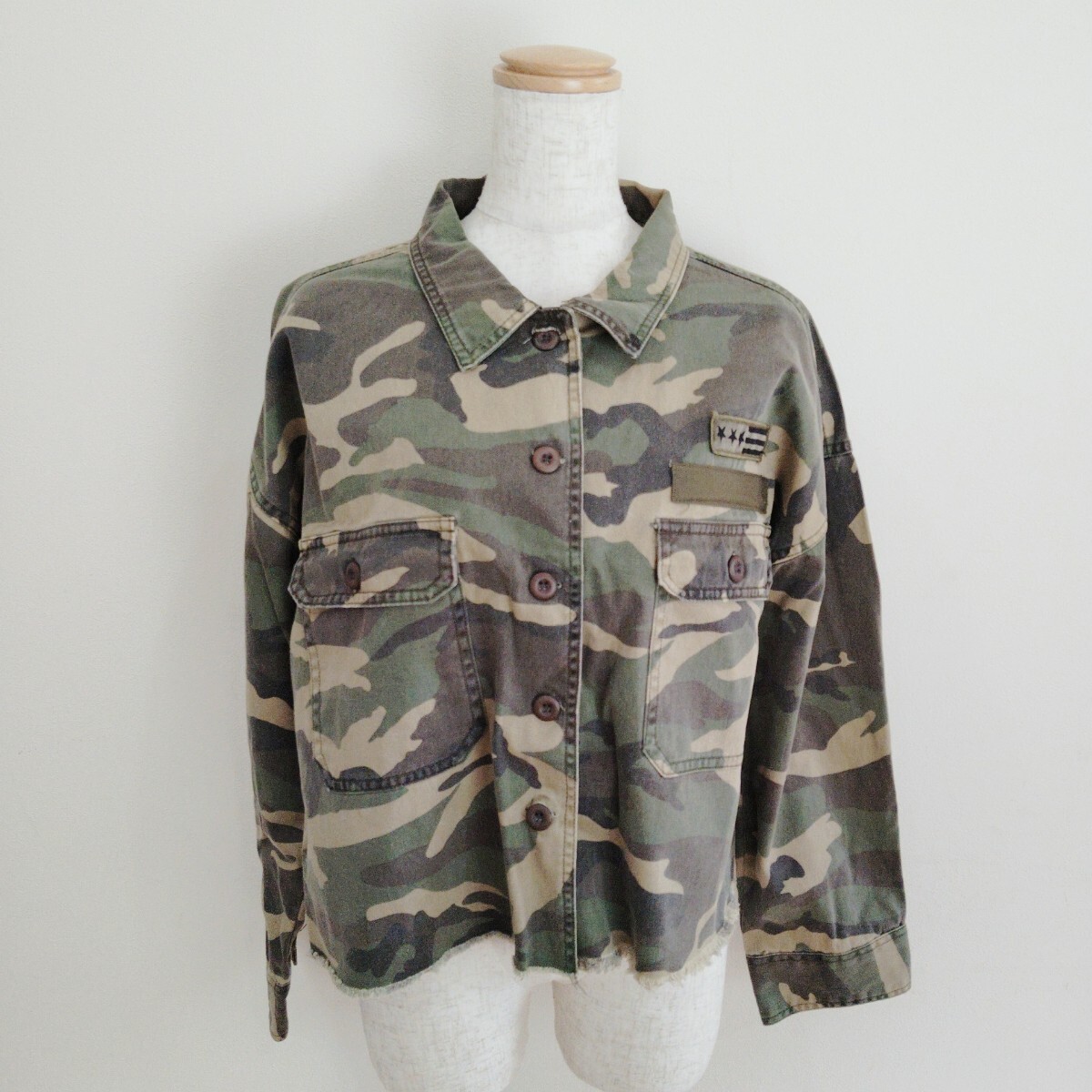 - 0820/M/INGNI レディース ショート丈ジャケット 迷彩柄 カモフラージュ カーキ