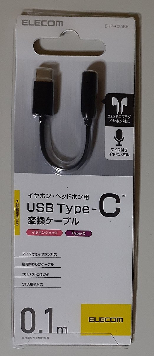> 6509 EHP-C35BK イヤホン・ヘッドホン用 USB Type-C変換ケーブル 0.1m ELECOM イヤホンジャック-TypeC