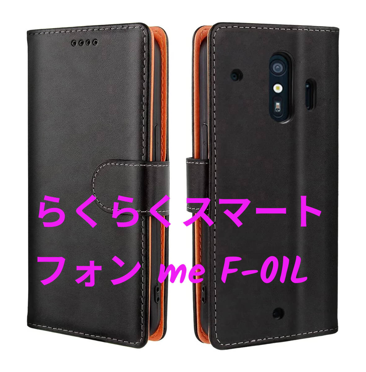 - らくらくスマートフォン me F-01Lケース 手帳型 マグネット式 カード収納 スタンド機能 手触りが良い レザー 耐衝撃 ブラック ay516