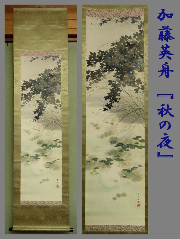 - 【こもれび】 掛軸● 加藤英舟 『秋の夜』 共箱 【月 萩 中京画壇】
