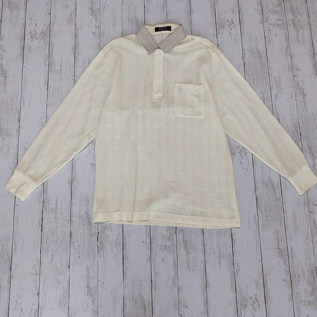 - GIANNI VALENTINO ポロシャツ M 長袖 ハーフボタン ストライプ