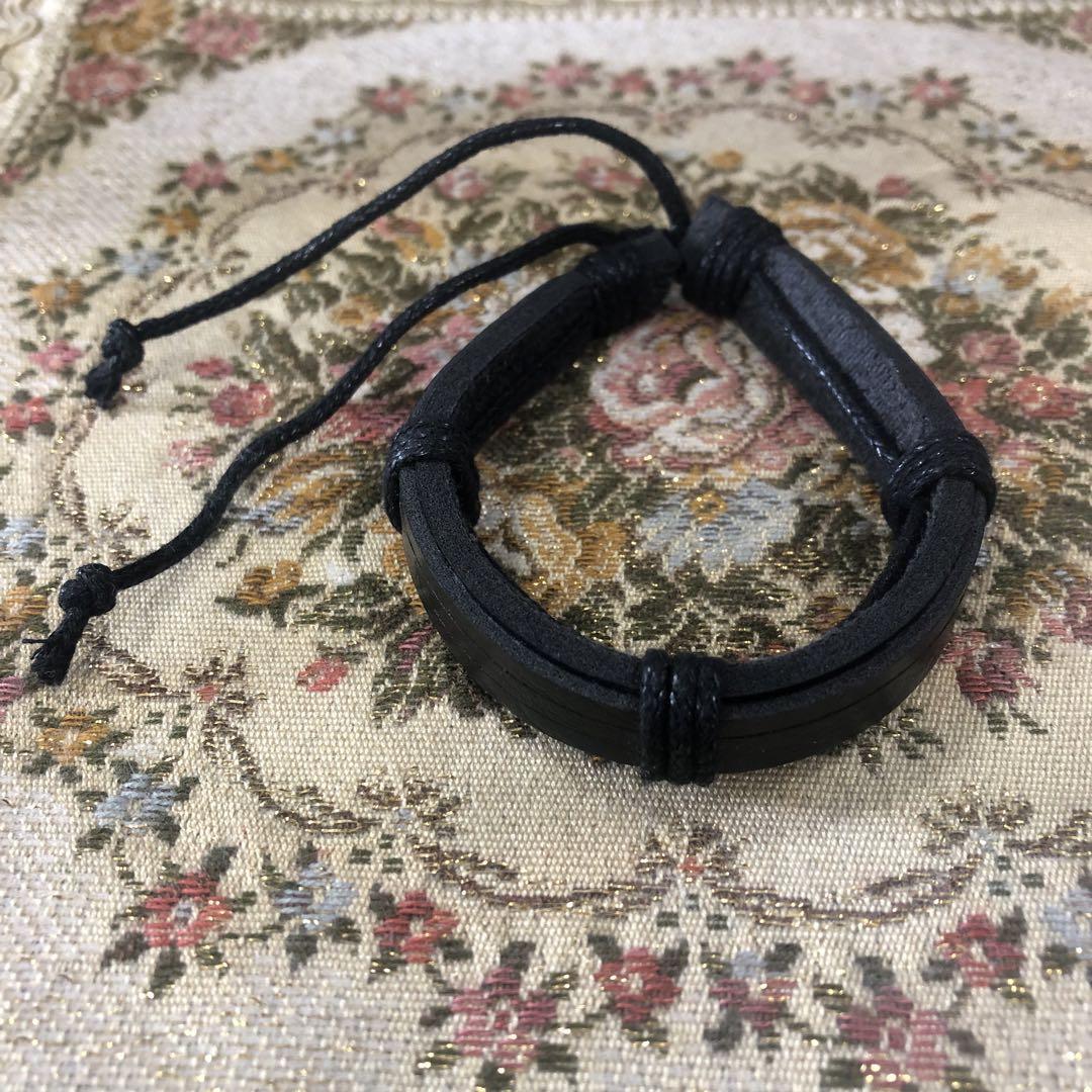 - 【新品未使用】ブラックレザー ブレスレット 男女兼用②