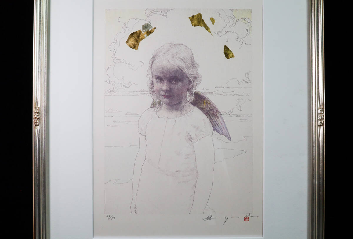 - ◇雅◇ 真作保証 中堀慎治「天使」5号 29/50 エディション有 直筆サイン 押印入り ミクストメディア 金箔仕様 /RYO.25.8 [M74.5] OXN6