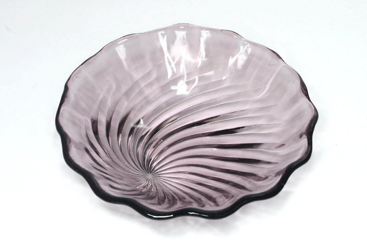 ・昭和レトロ ウランガラス 貝型 硝子皿 /硝子細工 ガラス工芸 紫 菓子器 プレス硝子 鉢 |