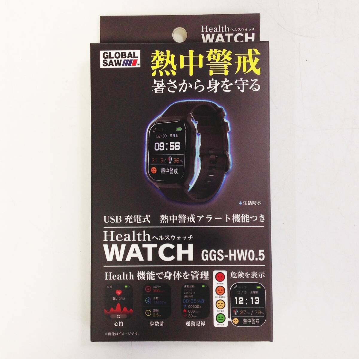 > ●【WH-7590】未使用 MOTOYUKI モトユキ グローバルソー ヘルスウォッチ GGS-HW0.5 USB充電式 熱中警戒アラート機能つき