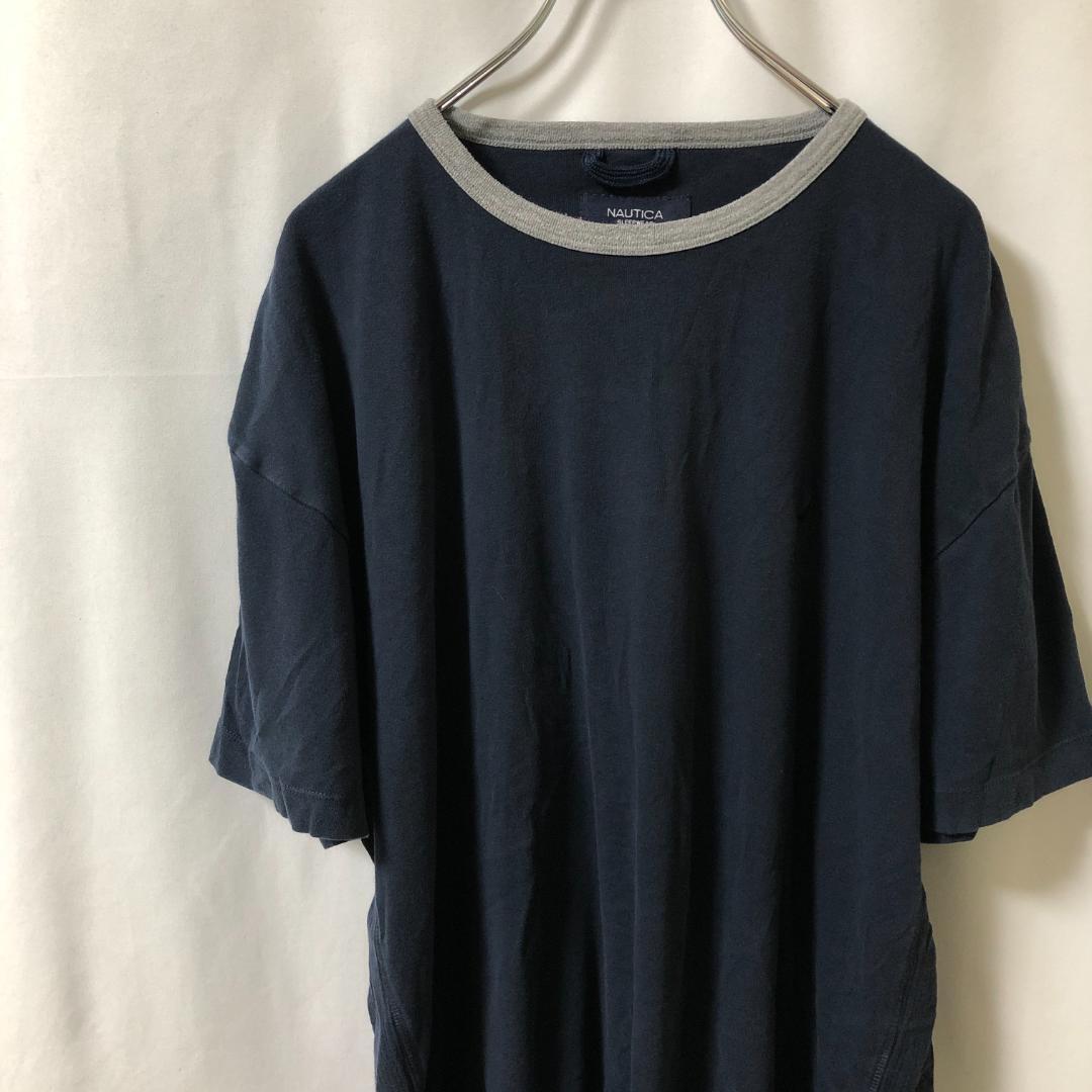 - N-5158 NAUTICA ノーティカ アメリカ古着 企業ロゴ 刺繍 無地 Tシャツ 半袖 L メンズ