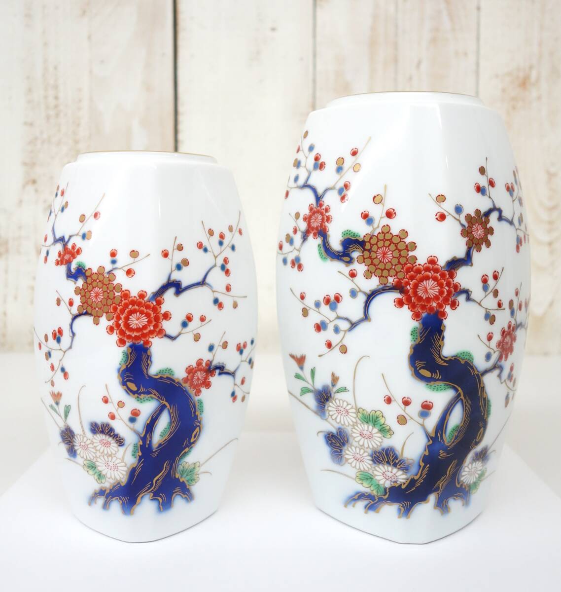 - 伝統工芸 工芸美術 レトロ *有田焼窯元 宮内庁御用達 深川製磁 FUKAGAWA *花瓶 花器 大小二点揃 *飾壺 壺 花生 花入 花立
