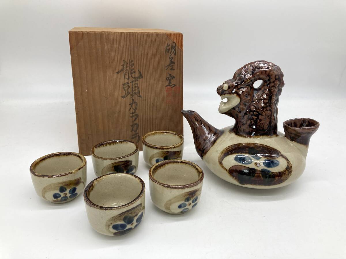 - 京都8★ 沖縄 琉球 龍頭カラカラ 胡差窯 酒器セット お猪口 箱付き