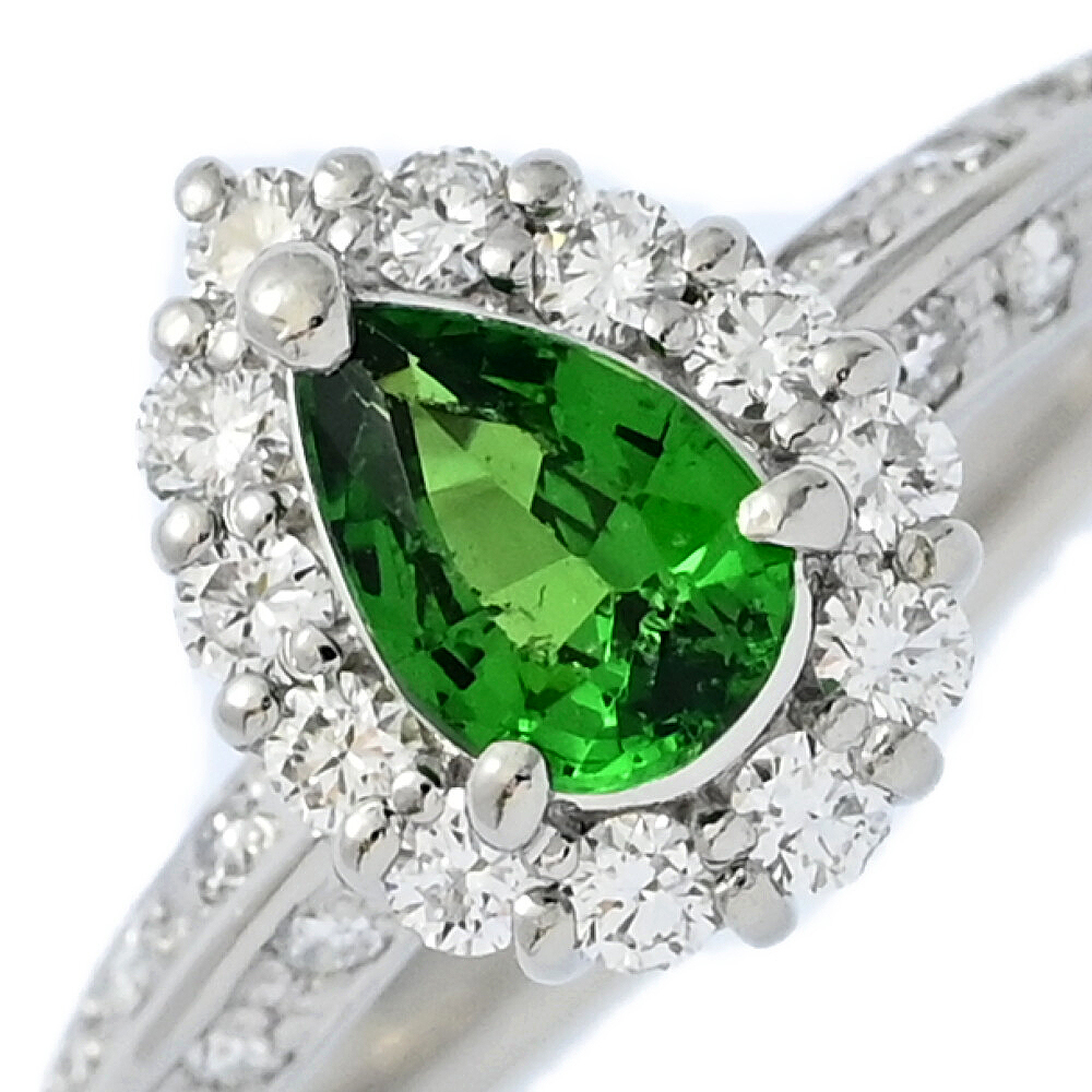 - GA0.6ct/FD:0.37ct/取り巻きセッティング・グリーングロッシュラガーネット・ツァボライト ダイヤモンドリング/Pt900-4.3g/11号■586005