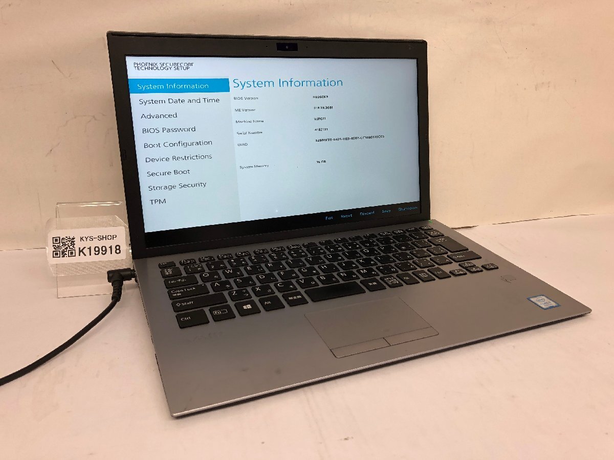 - ジャンク/ VAIO VJPG11 Intel Core i7-8550U メモリ16.38GB ストレージ無し 【K19918】