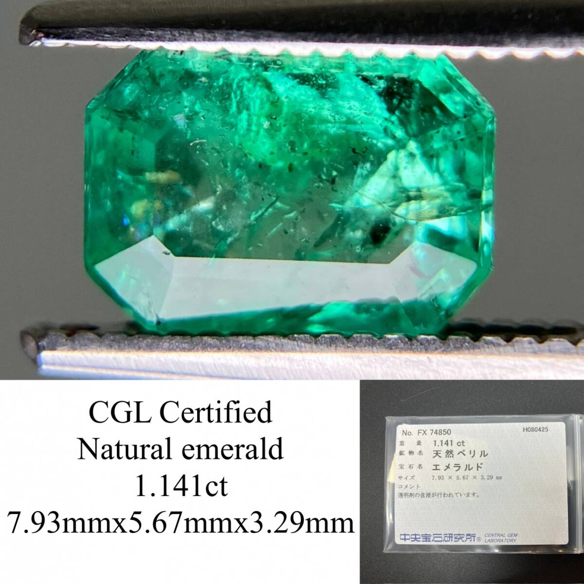 > エメラルド 天然 1.141ct 中央宝石ソーティング付き 7.93×5.67×3.29 ルース( 裸石 ) 6307YY