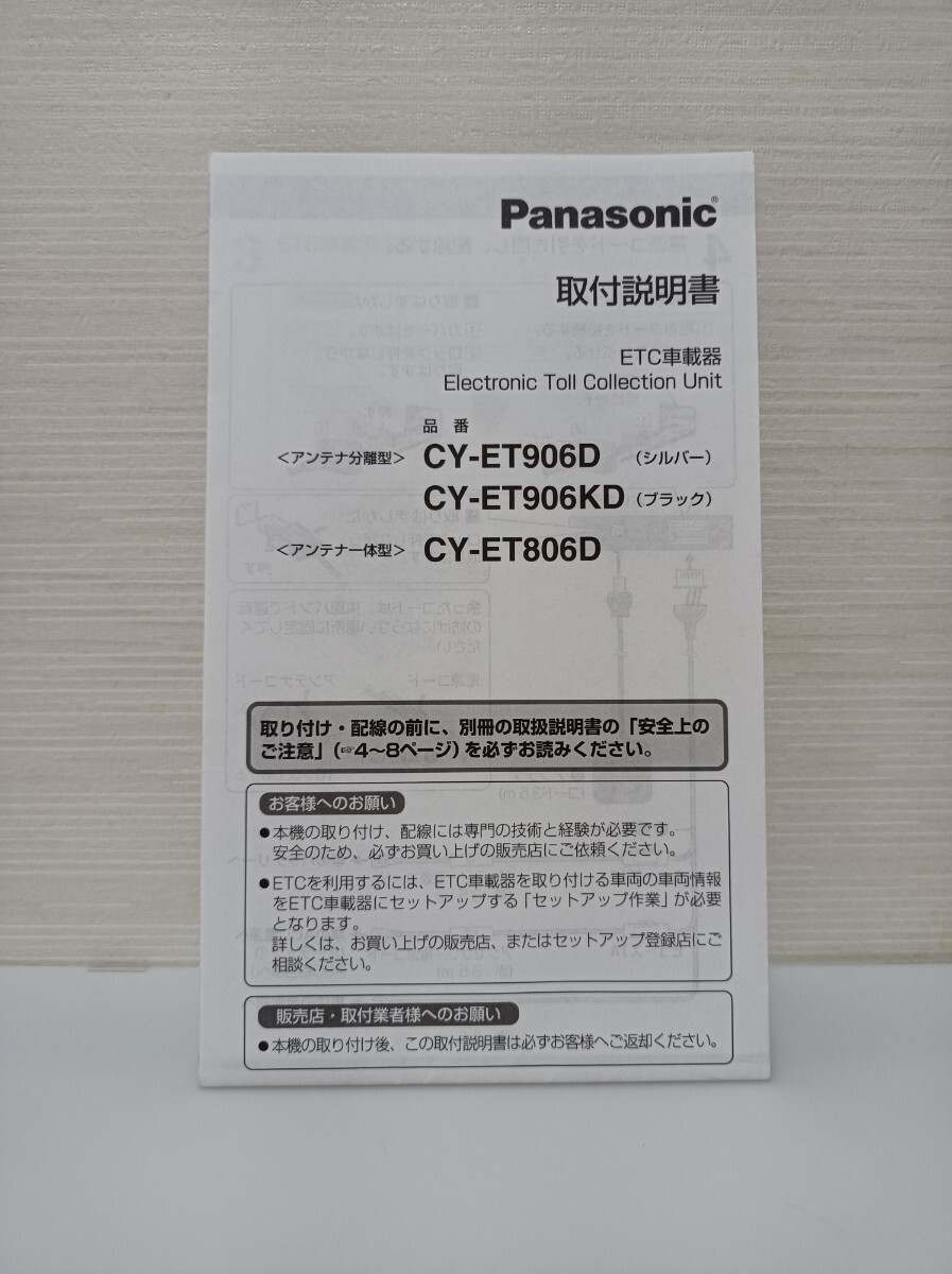 > パナソニック ETC車載器 CY-ET906D CY-ET906KD CY-ET806D 取付説明書 美品 送料無料