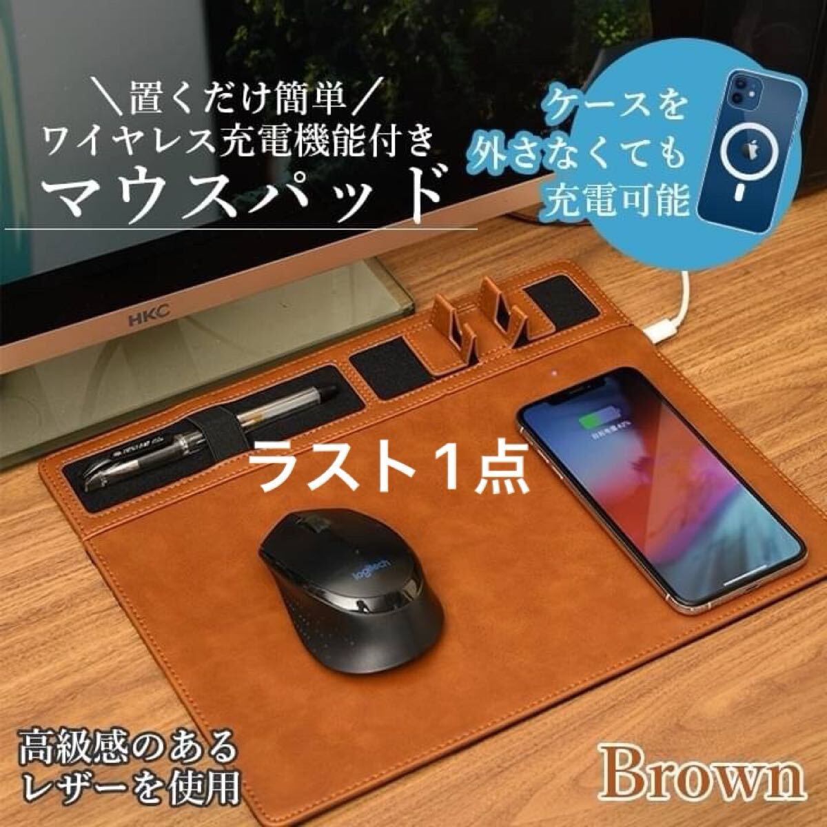 - 新品!ラスト1点!レザー マウスパッド ブラウン ワイヤレス 充電器付き 充電 スマートフォン