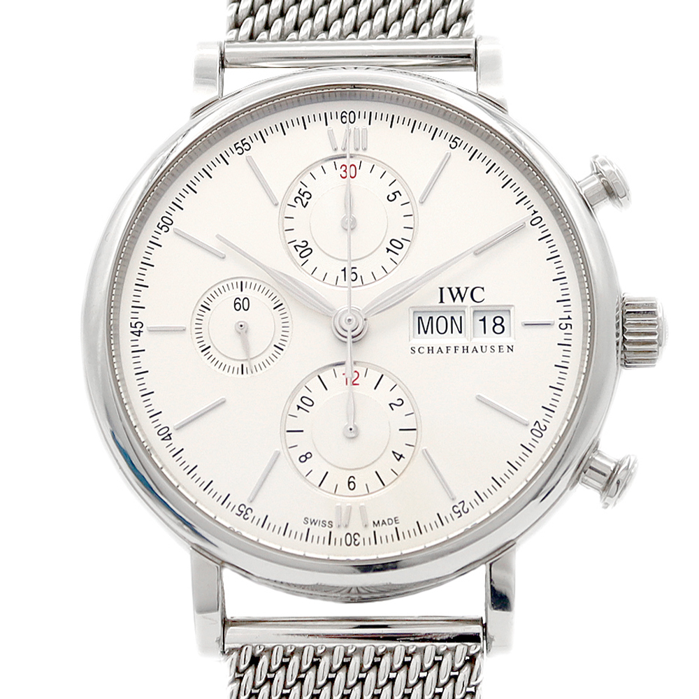 - 内部点検済 IWC インターナショナルウォッチカンパニー ポートフィノ クロノグラフ IW391009 デイデイト シルバー SS メンズ 自動巻き