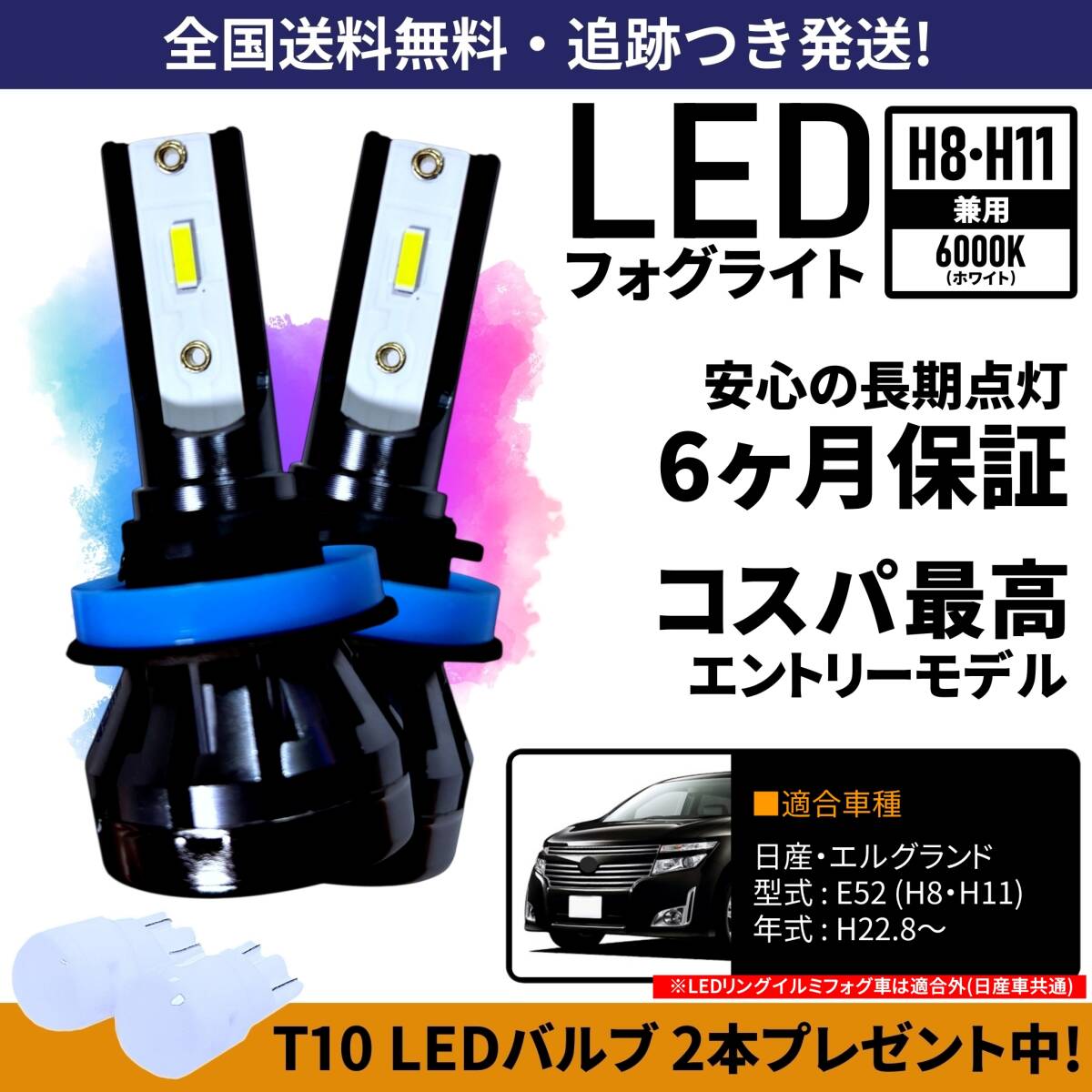 > 【送料無料】日産 エルグランド E52 LED フォグライト フォグランプ H8 H11 ホワイト 6000K 保証付き