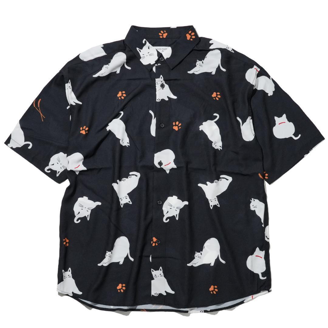 - 半袖シャツ Mサイズ 接触冷感 メンズ レディース キャット 猫柄 新品 黒