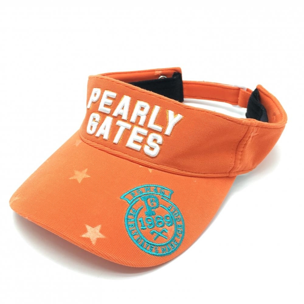 - 【美品】パーリーゲイツ サンバイザー オレンジ 星柄 ロゴ白 汗取りパッド付 FR ゴルフウェア PEARLY GATES