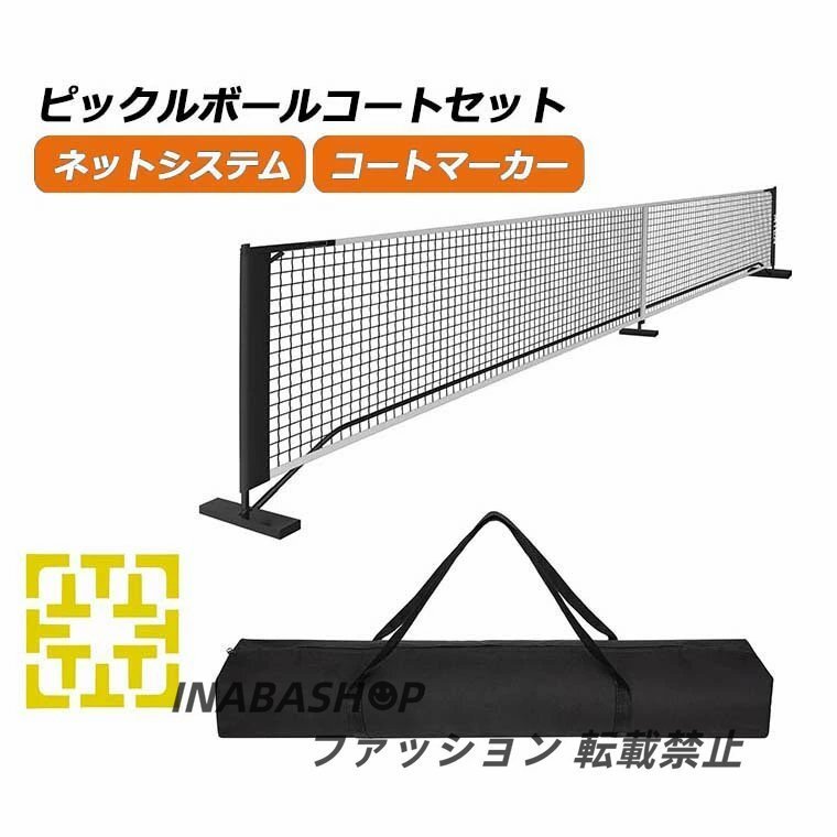 - ピックルボールネットセット ポータブルネットシステム 公式サイズ キャリングバッグ コートマーカー付き 簡単組み立て 持ち運び便利