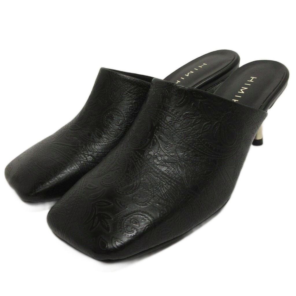- ヒミコ 卑弥呼 美品 ワイド スクエアトゥ ミュール ペイズリー型押し レザー 黒 ブラック 23cm レディース