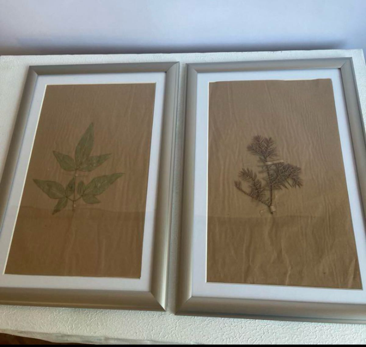 - 植物標本アルミフレーム ブロカントアトリエ蚤の市 ビンテージアンティーク 2枚 インテリア 額縁 フレーム 壁掛け