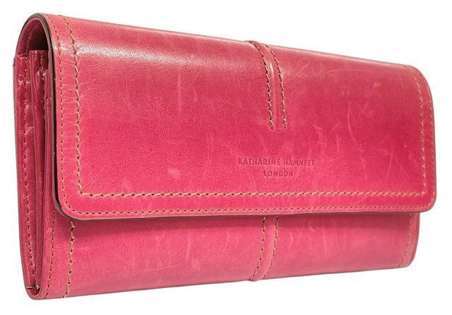> 未使用 訳あり キャサリンハムネット 長財布 レザー ピンク KATHARINE HAMNETT 財布 牛革 レディース 【中古】