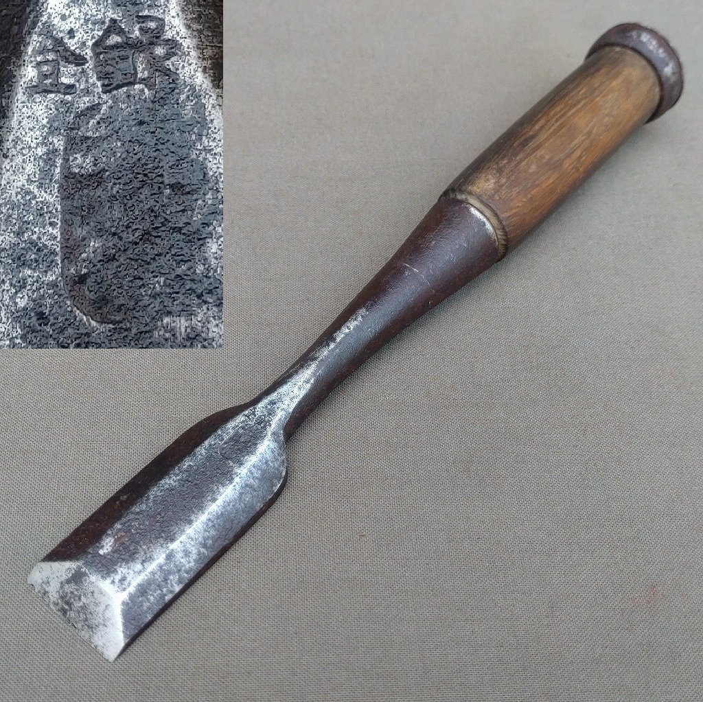 - 叩き鑿 在銘 24㎜ 全長約203㎜ のみ ノミ 大工道具 工具 日本製 ジャンク品 【4446】