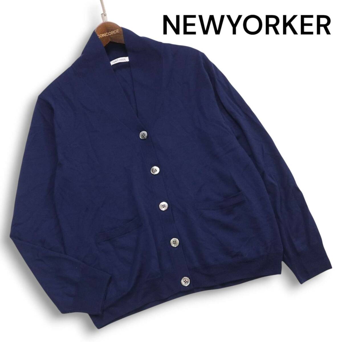 - NEWYORKER ニューヨーカー 秋冬 ウール100%♪ ニット カーディガン Sz.13 レディース 紺 ネイビー 大きいサイズ