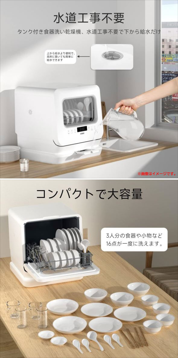> D7618YO ■0822【未使用品】食器洗い乾燥機 食洗機 工事不要 1~3人用 VIBMI D4P ホワイト 卓上型 小型 食洗器家電